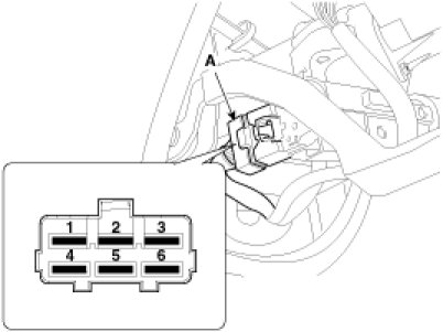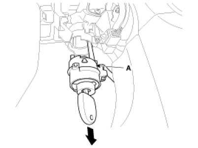 5. Remove the ignition switch after disconnecting the ignition switch 6P connector (A)