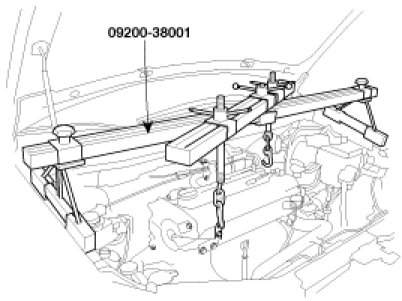 10. Using the engine support fixture (SST No.: 09200-38001), hold the engine and transaxle assembly safely.
