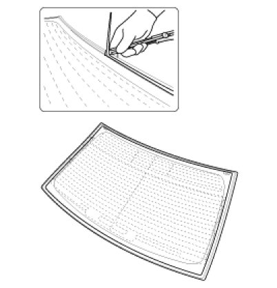 1. With a knife, scrape the old adhesive smooth to a thickness of about 2mm (0.08 in.) on the bonding surface around the entire rear window glass opening flange :