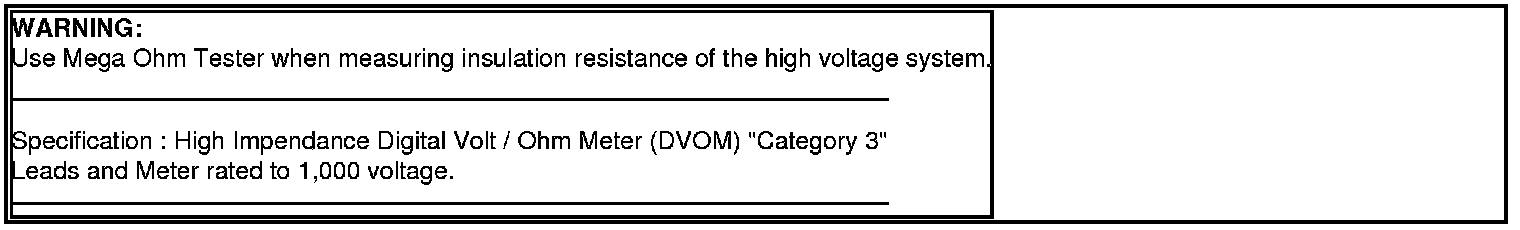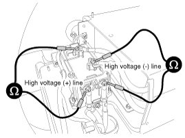 5. Connect the insulation tester (+) terminal to the high voltage battery (+) and (-). Measure the resistance.