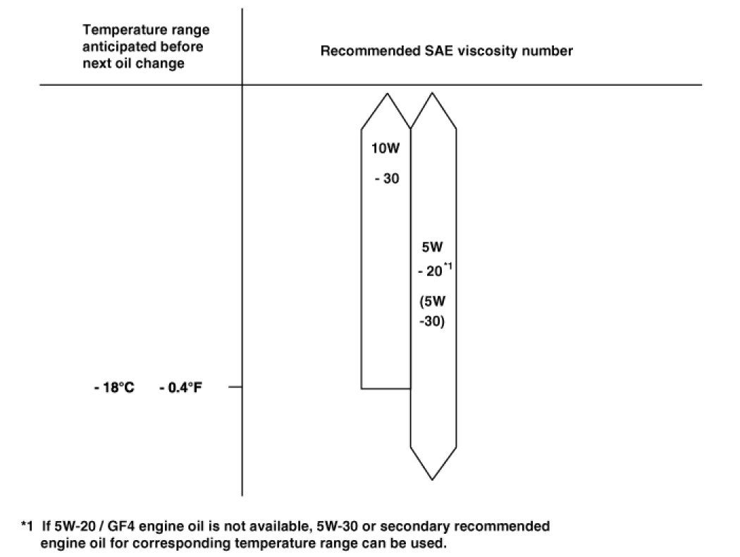 Recommendation (except Middle East) : 5W-20/GF4&SM (If not available, refer to the recommended API or ILSAC classification
