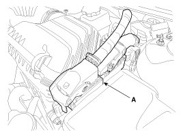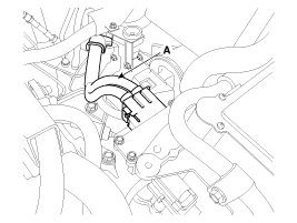 9. Pull the battery plus cable (A) toward the engine room to make space for the bracket bolt removal.