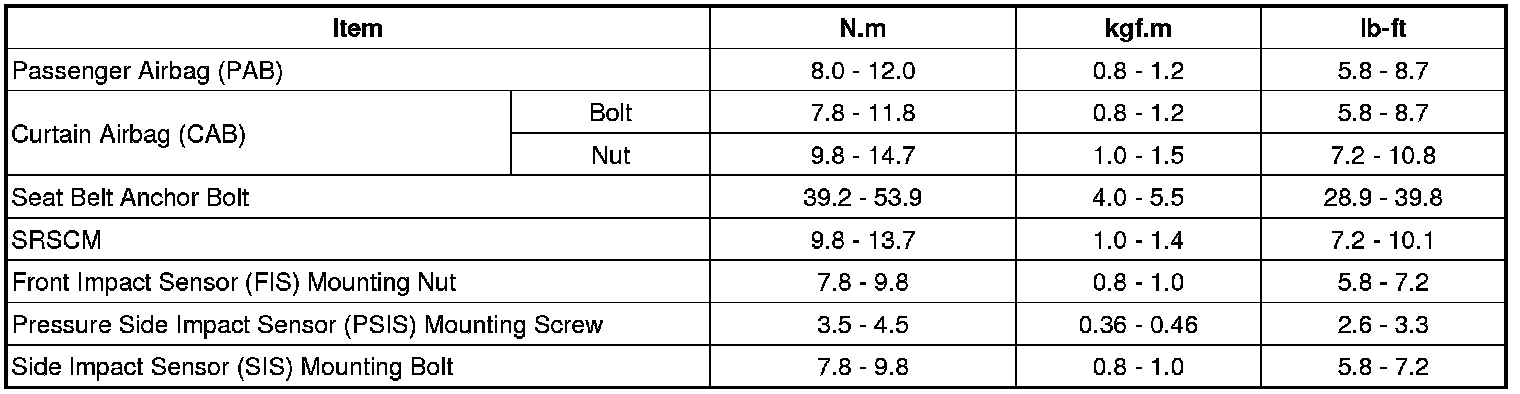 Tightening Torques