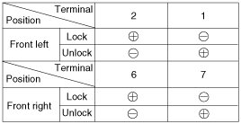 4. Check for continuity between the terminals in each switch position when inserting the key into the door according to the table.