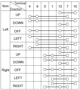 2. Check for the continuity between terminals of power door mirror switch according to the table.