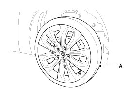 5. Remove the RH front tire (A).