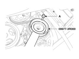 4. Remove the center bolt (A) while holding the disc & hub assembly with SST( 09977-3R000).