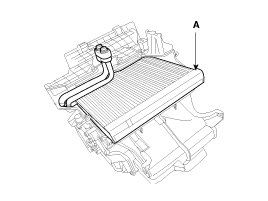 21. Loosen the mounting screws and then remove the heater core cover (A).