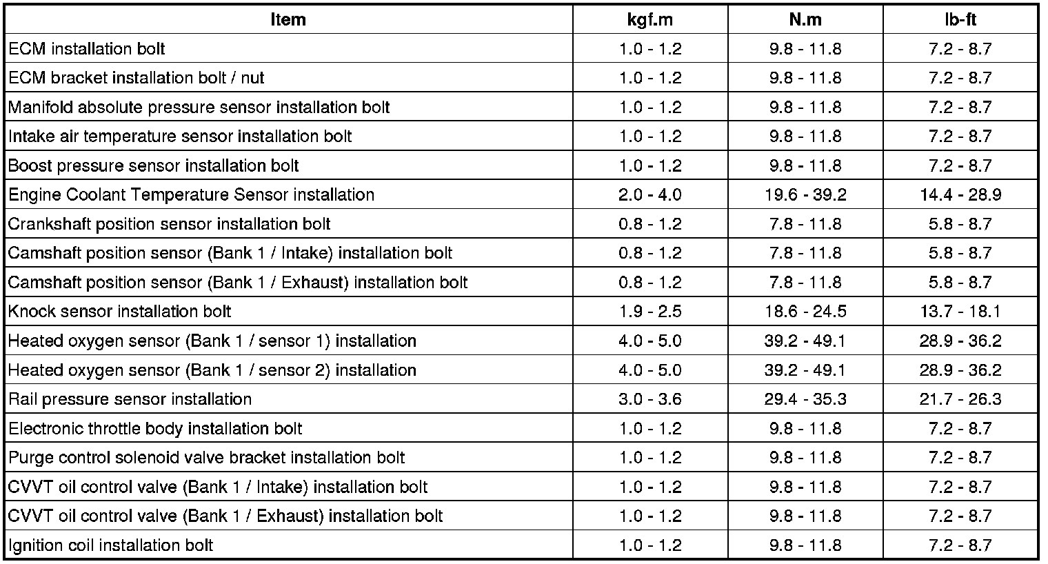 Tightening Torques