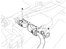 4. Pull up the lock, of the SRSCM connector, the disconnect the connector (A and B).