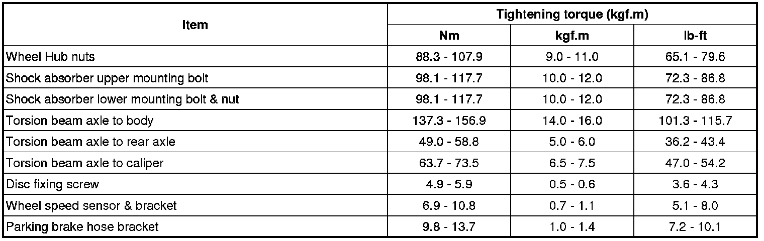Tightening Torques