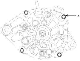 2. Remove the mounting bolts (A) and the brush holder assembly (B).
