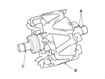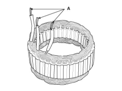 2. Check that there is no continuity between the slip rings and the rotor (B) or rotor shaft (A).