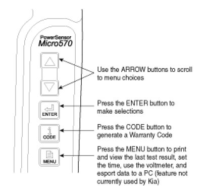Shut off engine end disconnect the tester clamps from the battery. Refer to the following table and take the appropriate action as recommended by the Micro 570.