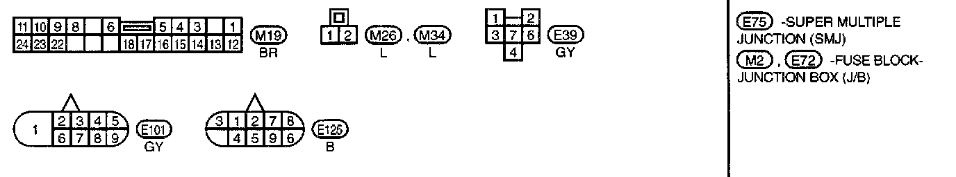 E75, M2, E72, M4, F26 Super Multiple Junction Box (SMJ), Fuse Block - Junction Box (J/B) and Electrical Units Terminal Arrangement
