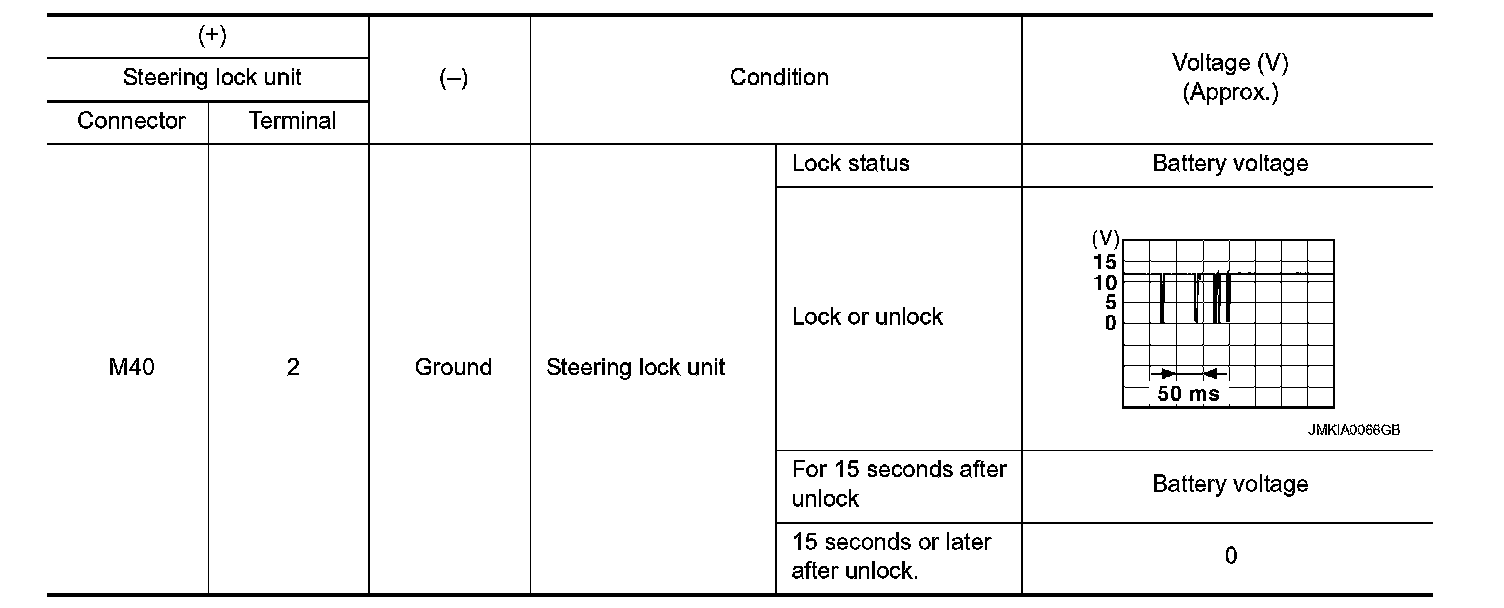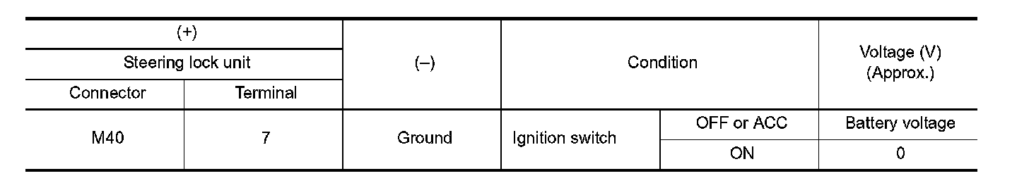 2. Read voltage signal between steering lock unit harness connector and ground.