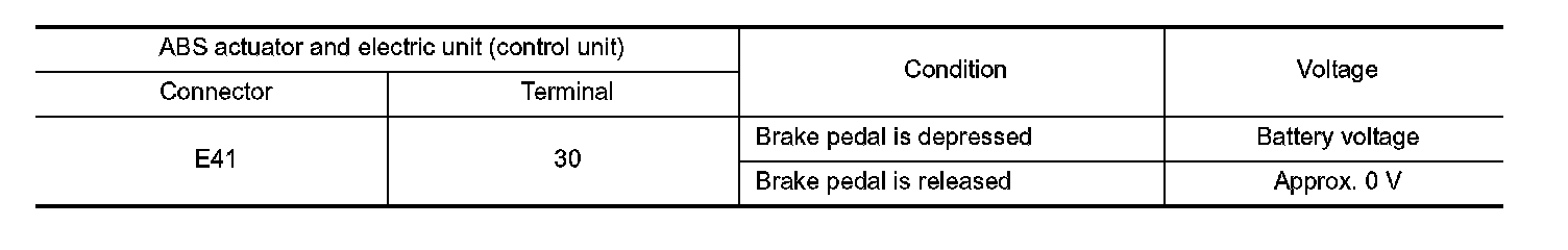 The stop lamp switch transmits the stop lamp switch signal (ON/OFF) to the ABS actuator and electric unit