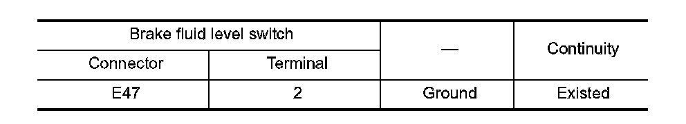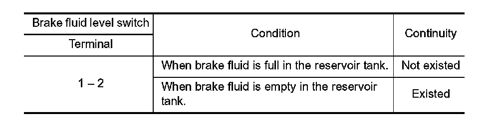 2. Check the continuity between brake fluid level switch harness connector and ground.