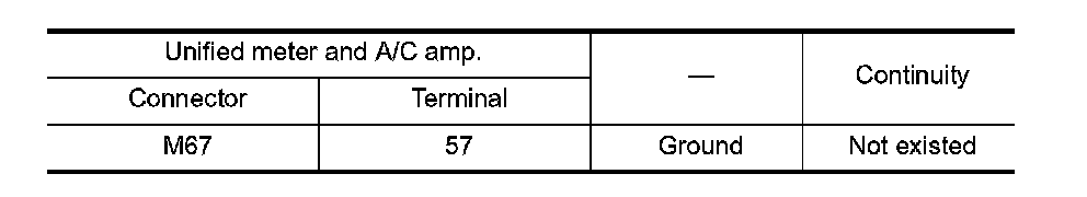 3. Check the continuity between unified meter and A/C amp. harness connector and ground.