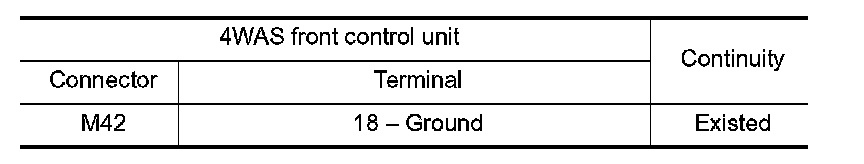 2. Check the continuity between 4WAS front control unit harness connector and the ground.