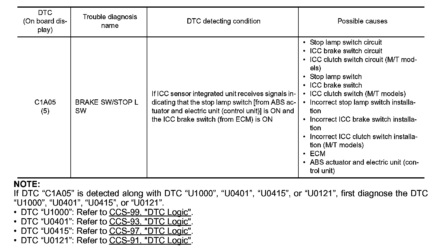- Stop lamp switch signal is input to ECM and ABS actuator and electric unit (control unit). These signals are transmitted from ECM and ABS actuator and electric unit (control unit) to ICC sensor integrated unit via CAN communication.