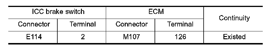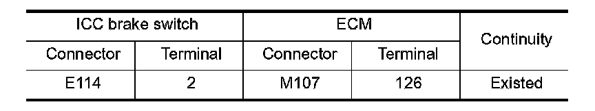 3. Check for continuity between ICC brake switch harness connector and ECM harness connector.