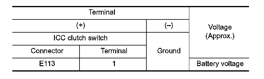 2. Check voltage between ICC clutch switch harness connector and ground.
