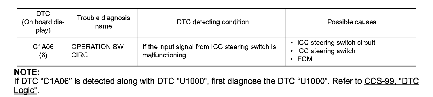 3. Check the ICC steering switch. C1A06.