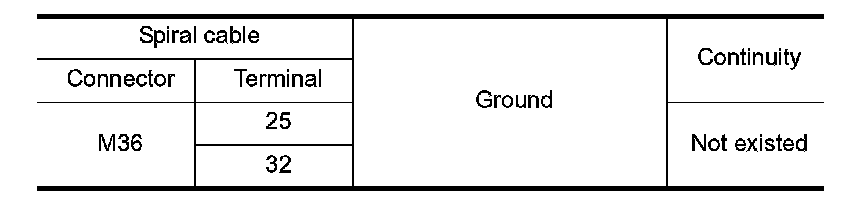 3. Check for continuity between spiral cable harness connector and ground.