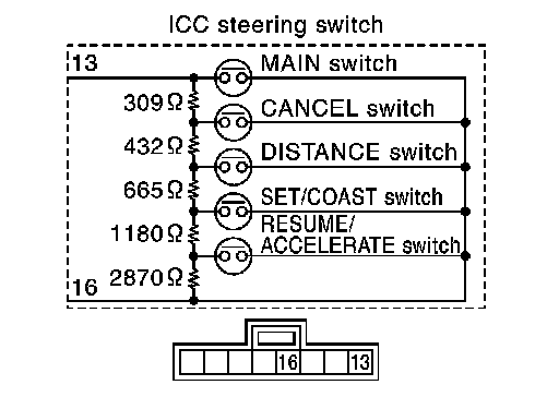 - The ICC steering switch signal is input to the ECM. It is transmitted from ECM to ICC sensor integrated unit via CAN communication.