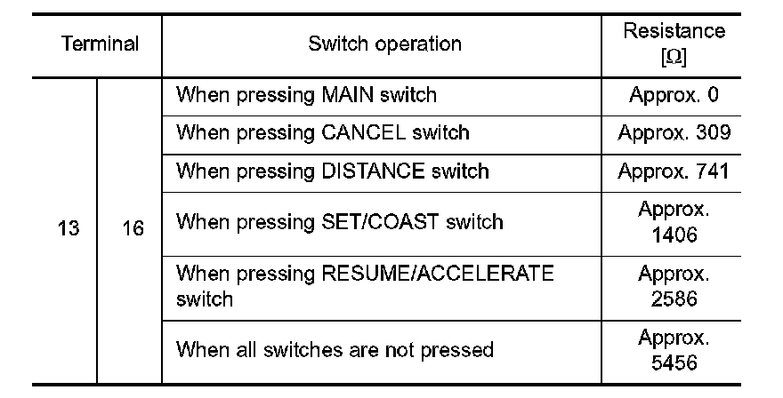 Check resistance between ICC steering switch terminals.