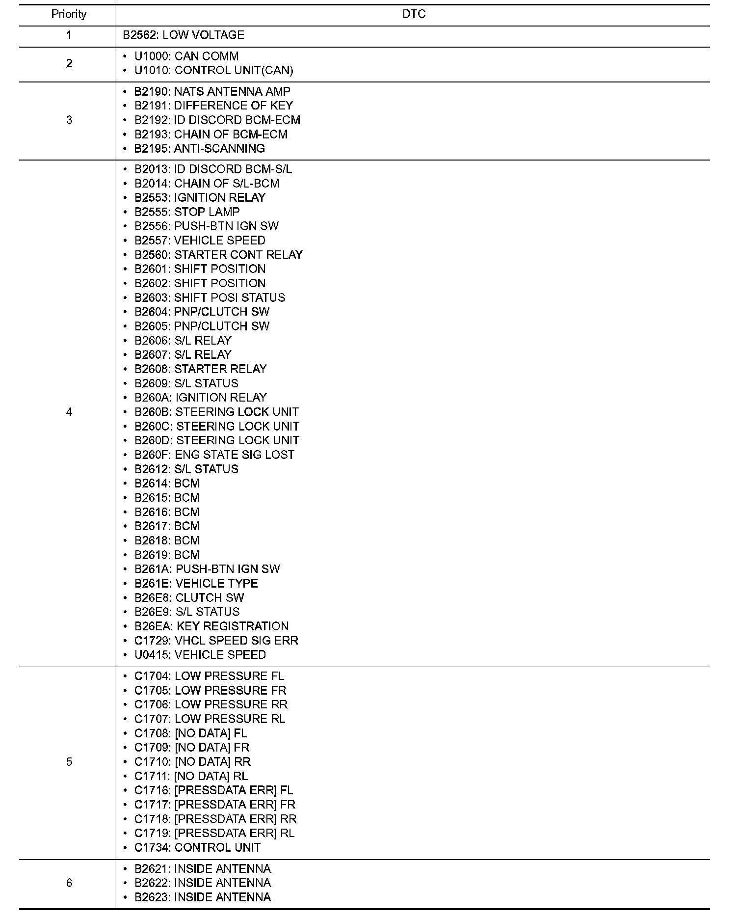 DTC Inspection Priority Chart 1-6: