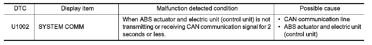 2. Check malfunction history between each control unit connected to ABS actuator and electric unit (control unit).