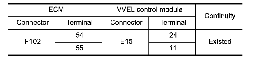 4. Check the continuity between ECM harness connector and VVEL control module harness connector.