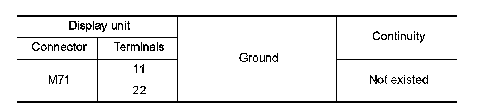 Check display unit power supply and ground circuit. Without Rear View Camera.