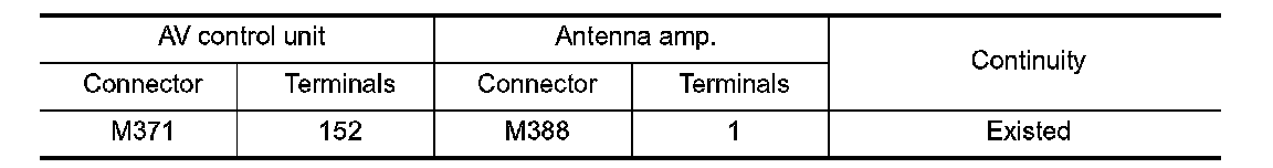 3. Check continuity between AV control unit harness connector and antenna amp. harness connector.