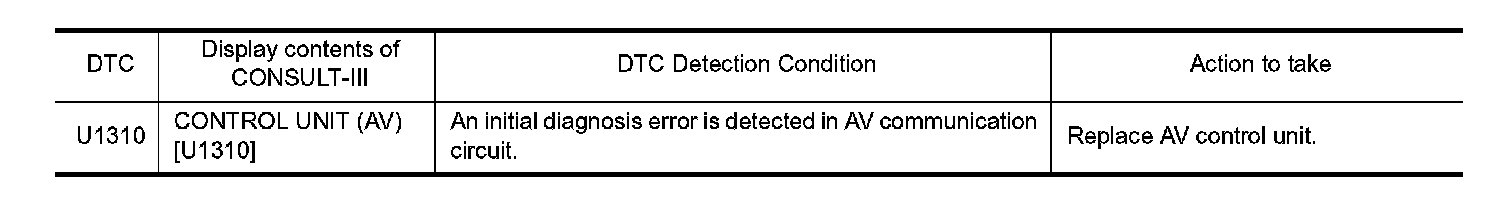 Replace the AV control unit if this DTC is displayed.