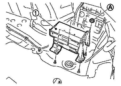 2. Remove nuts (A) from the trunk room RH, and remove TEL adapter unit and satellite radio tuner (1) from trunk room side.