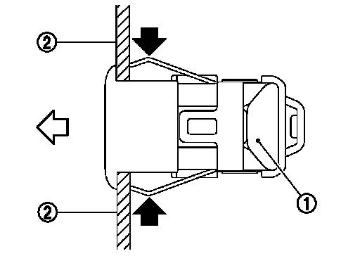 3. Press the spring fixing the sensor (1) (black arrows).