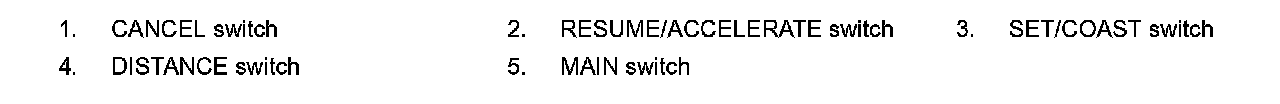 If the system is cancelled by conditions 1-6 below, the system will resume control at the last set cruising speed by pushing up the RESUME/ACCELERATE switch.