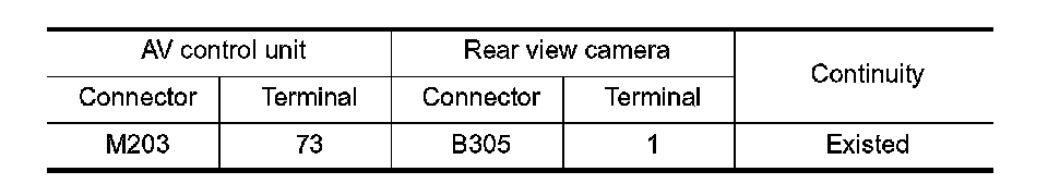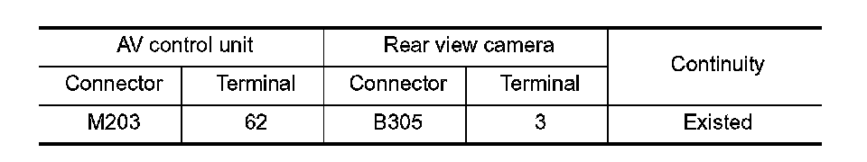 3. Check continuity between AV control unit harness connector and rear view camera harness connector.
