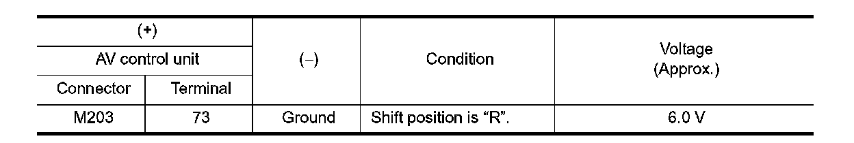 4. Check signal between AV control unit harness connector and ground.