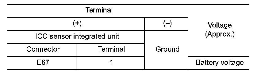 4. Check voltage between ICC sensor integrated unit harness connector and ground.