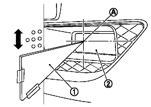 3. Adjust the position of the ICC target board (1) so that the extended line (A) that links the center of the rear window glass