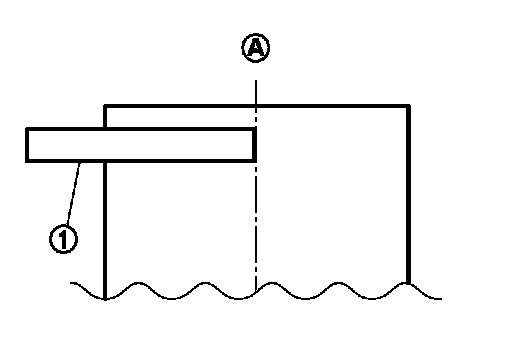 1. On the back of the ICC target board, attach the ruler (1) [450 mm (17.72 in) or more] or a similar tool squarely from the ICC target board center (A) in the left direction.