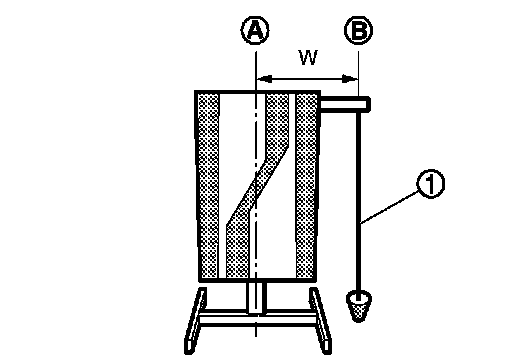 2. Suspend a weight from a string (1) attached to its end at the point (B) rightward from the ICC target board center (A).
