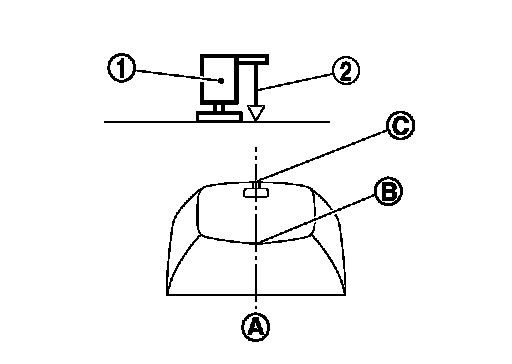 (the center of the rear window defogger pattern) (B) and the center of the windshield (the setting part of the room mirror) (C) align with the weight suspended (2) from the ICC target board.