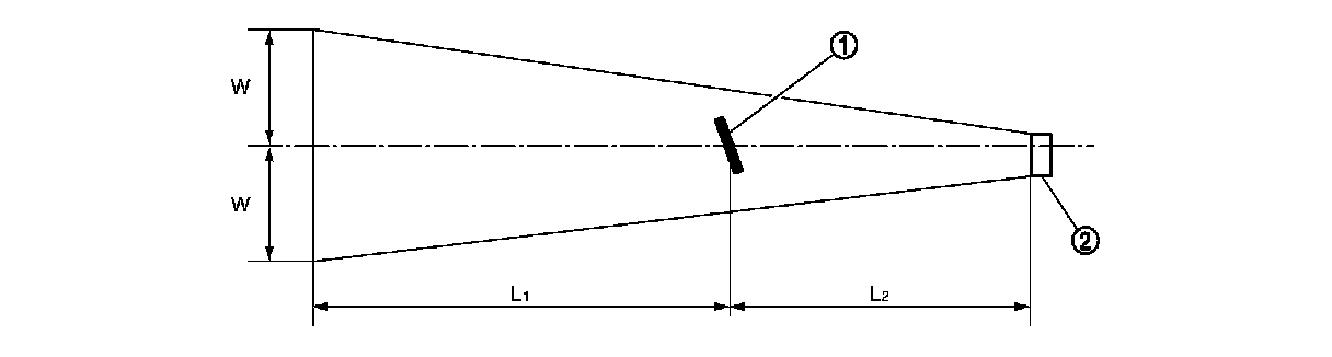 - To identify the laser beam axis center (A) easily, prepare a piece of paper (B) cut to the size of 38 mm (1.5 in) (W) � 22 mm (0.87 in)