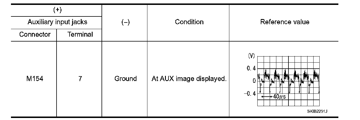3. Check signal between auxiliary input jacks harness connector and ground.