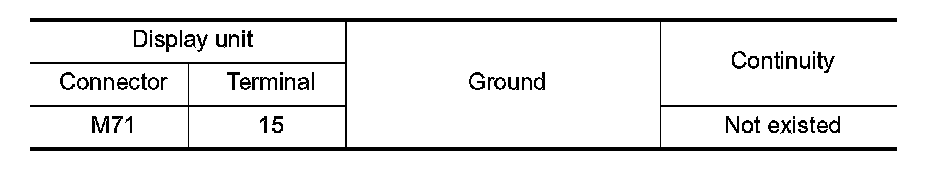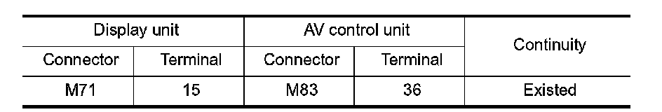 3. Check continuity between display unit harness connector and AV control unit harness connector.